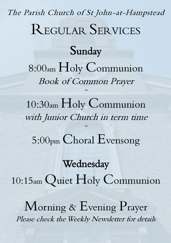 Welcome to the Parish Church of St John-at-Hampstead. We aim to be an active, inclusive and growing community which worships, welcomes, learns and serves. Our vision statement is “Building an inclusive community of Christian love, faith, witness and action”.